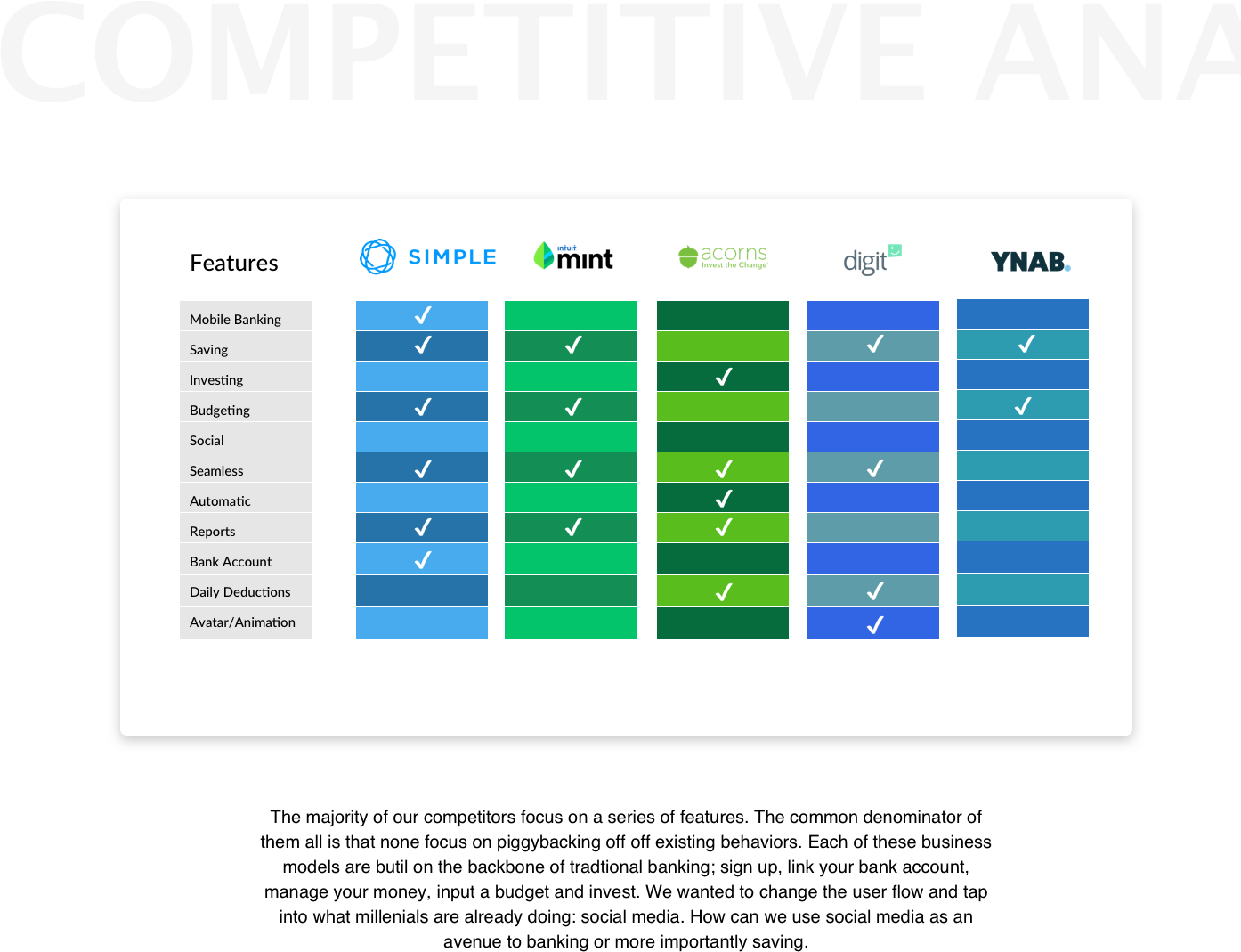 During the semester my teammates and I worked with Citibank to develop a mobile banking solution or under-engaged millennials.